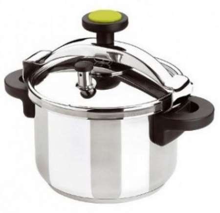 Acier inoxydable 18/10, triple fond : inox-cuivre-inox. Poignées en plastique, couvercle à bouton fermeture rapide, joint silicone. Vendu sans panier, tous feux dont induction