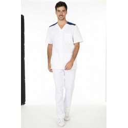 TUNIQUE HOMME VALENTIN MC P/C BLANC/MARINE T0 (34-36) #