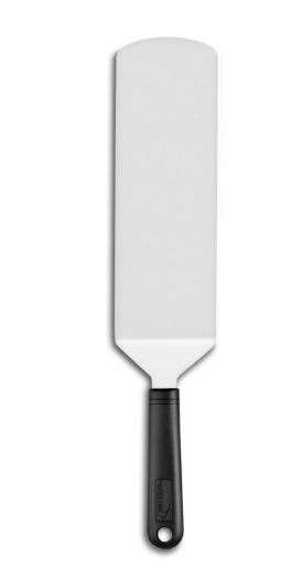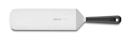 Spatule coudée 30 cm - Bonne Cuisine® - manche surmoulé en plastique noir. Très utile pour un dressage de précision, pour glacer des préparations, lisser des gâteaux, monter en pointe, exécuter des décors sur chocolat. Sa lame, en acier inoxydable, est meulée (épaisseur de la lame dégressive) pour garantir une meilleure flexibilité.
