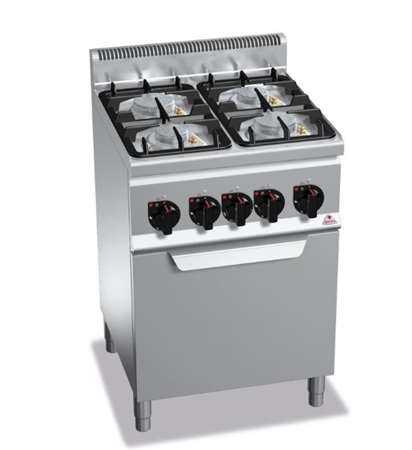 Plaque coup de feu gaz sur four gaz statique GN 2/1 et armoire fermée + 4 brûleurs