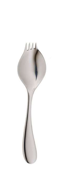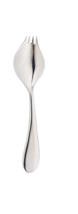 Inox 18/10 brillant Epaisseur 3 mm Couvert 3 en 1 : son design ingénieux marie cuillère, fourchette et couteau, garantissant une expérience de dégustation unique.